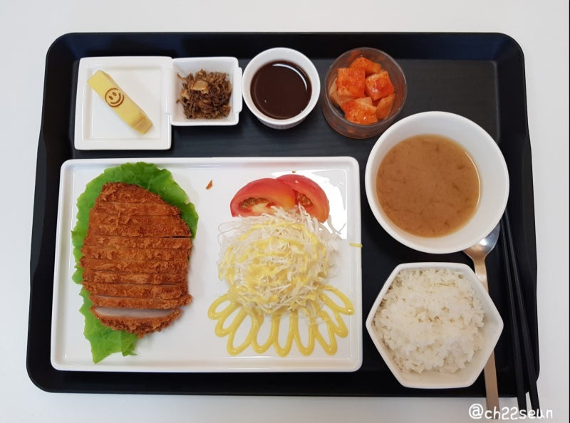 심플리키친의 대표 메뉴는 수비드 돈가스 정식. 당시 기준 8,000원이었으며, 정식 구성은 다음과 같았습니다.